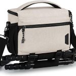 BAGSMART Small Camera Bag for Photographers, Compact Camera Shoulder Bags for DSLR/SLR/Mirrorless Cameras, Waterproof Crossbody Camera Case with Tripod Holder, Ivory White